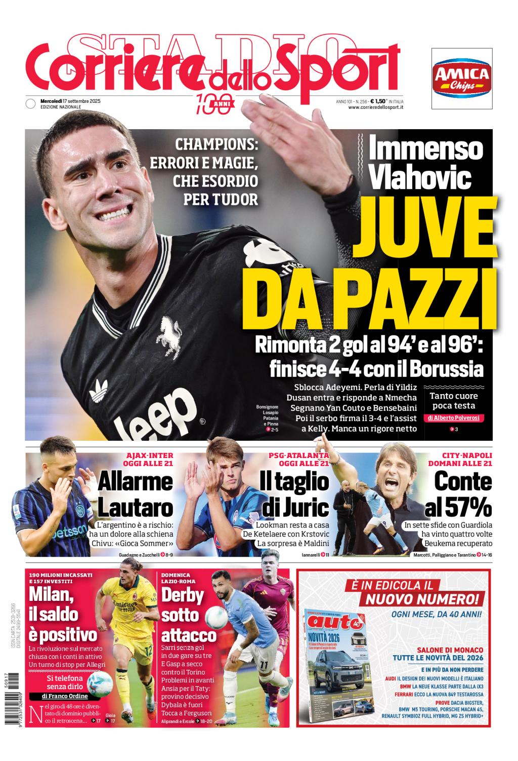 Stasera e domani, sempre alle ore 21:00, in campo le altre italiane. Oggi, Ajax-Inter (con Yann Sommer in porta e dubbio Lautaro Martínez tra i nerazzurri di Cristian Chivu) e PSG-Atalanta (la 'Dea' di Ivan Jurić senza Ademola Lookman, ma con Charles De Ketelaere e Daniel Maldini dietro Nikola Krstović).