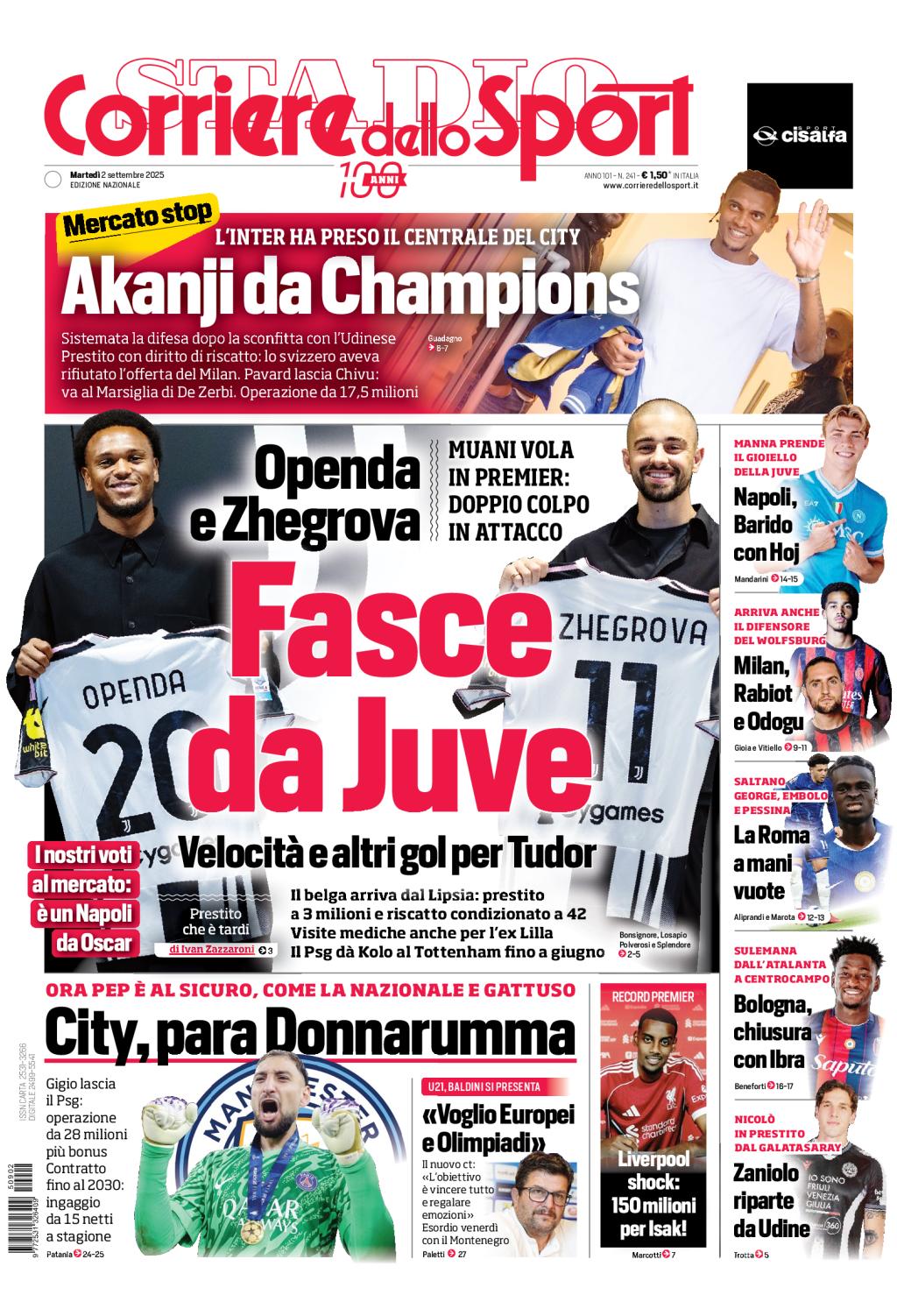 L'Inter, invece, ha completato una duplice operazione in difesa, più o meno sulle stesse cifre tra entrata e uscita. I nerazzurri hanno preso Manuel Akanji, difensore centrale del Manchester City (che aveva rifiutato il Milan) e ceduto, contestualmente, Benjamin Pavard all'Olympique Marsiglia. Festeggia il Napoli, con Eljif Elmas, Rasmus Højlund e il gioiello della Juve, Francesco Baridó.
