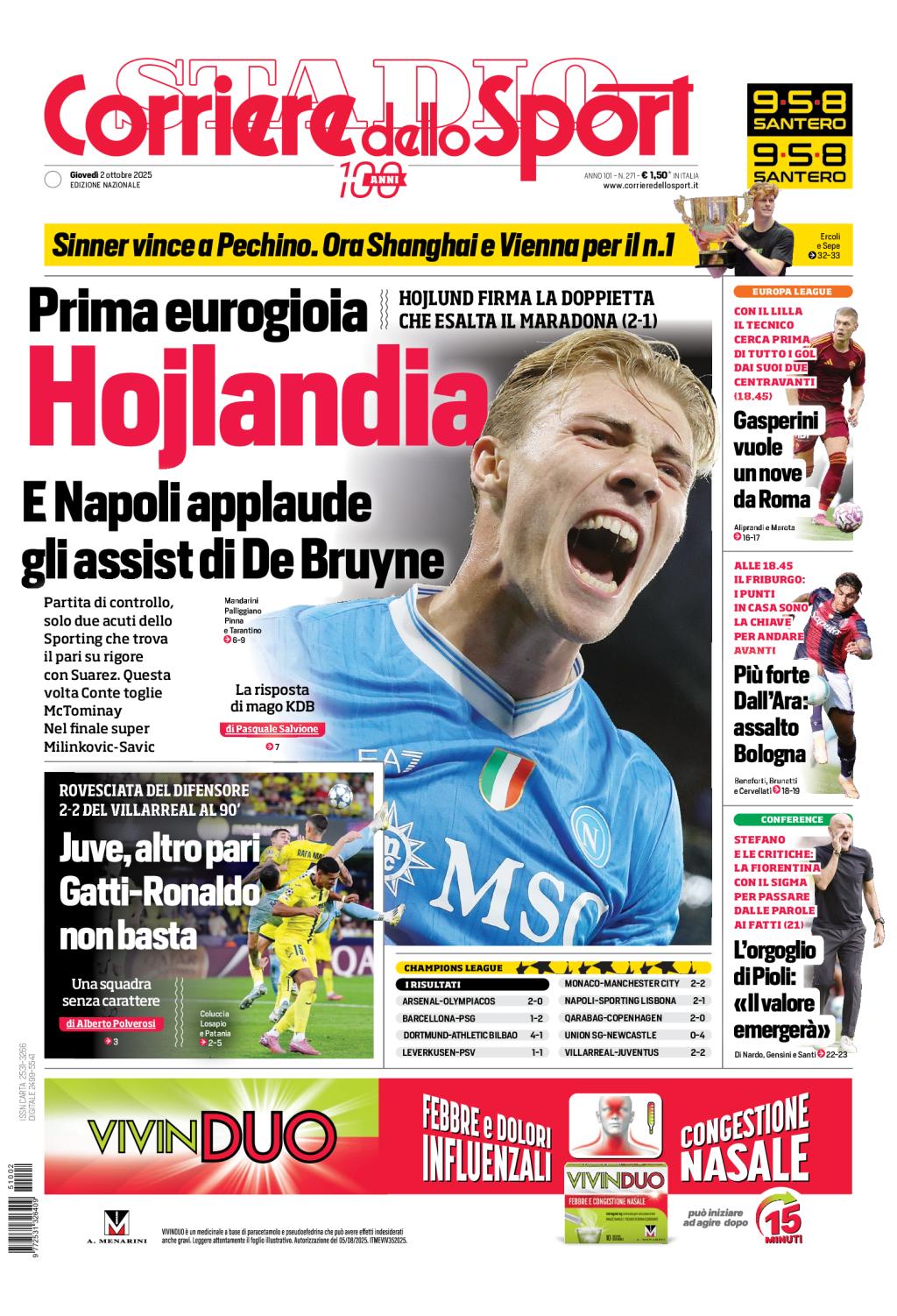 Altro pareggio, invece, per la Juventus, che non va oltre il 2-2 in casa del Villarreal. Sotto per effetto di un gol di Georges Mikautadze, i bianconeri ribaltano il punteggio con la rovesciata di Federico Gatti e la rete di Francisco Conceição. Al 90', però, l'ex Danilo Veiga li riagguanta.