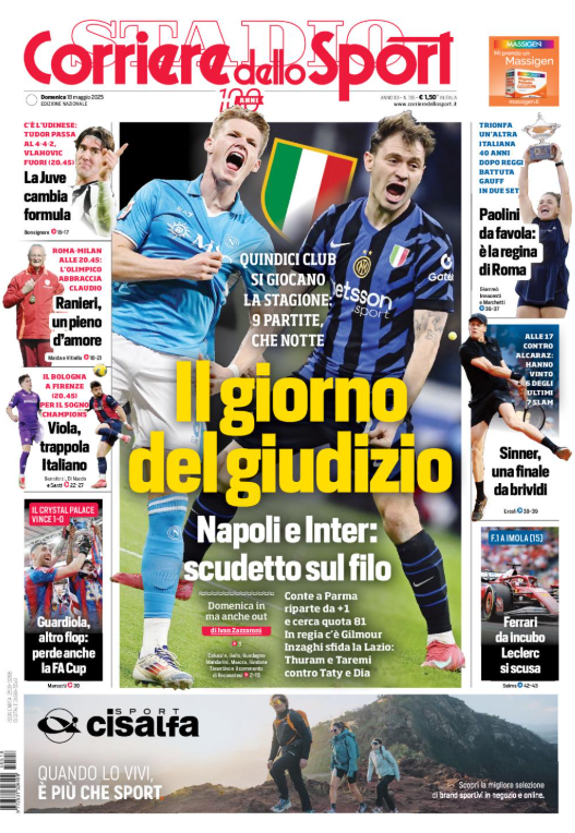 Questa è la prima pagina di 'Corriere dello Sport', in edicola oggi, domenica 18 maggio 2025. Diamo un’occhiata alle principali novità sul mondo dello sport e in particolare del calcio, cercando di evidenziare le notizie sul Milan.