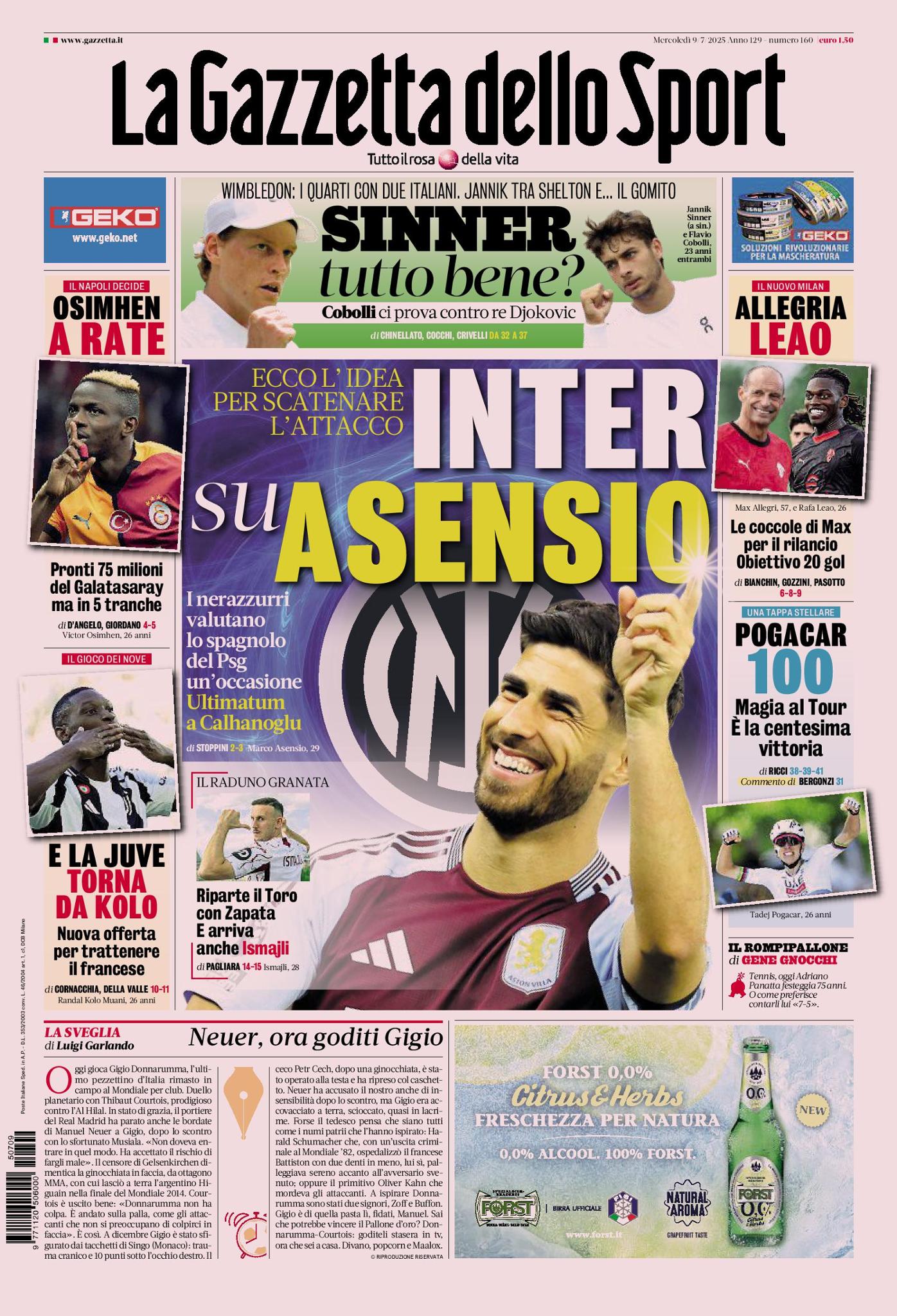 Mentre il Torino annuncia l'ingaggio dello svincolato Ardian Ismajli, negli allenamenti di Milanello il nuovo allenatore del Milan, Massimiliano Allegri, dispensa coccole per Rafael Leão. L'obiettivo è fargli fare 20 gol in questa stagione.