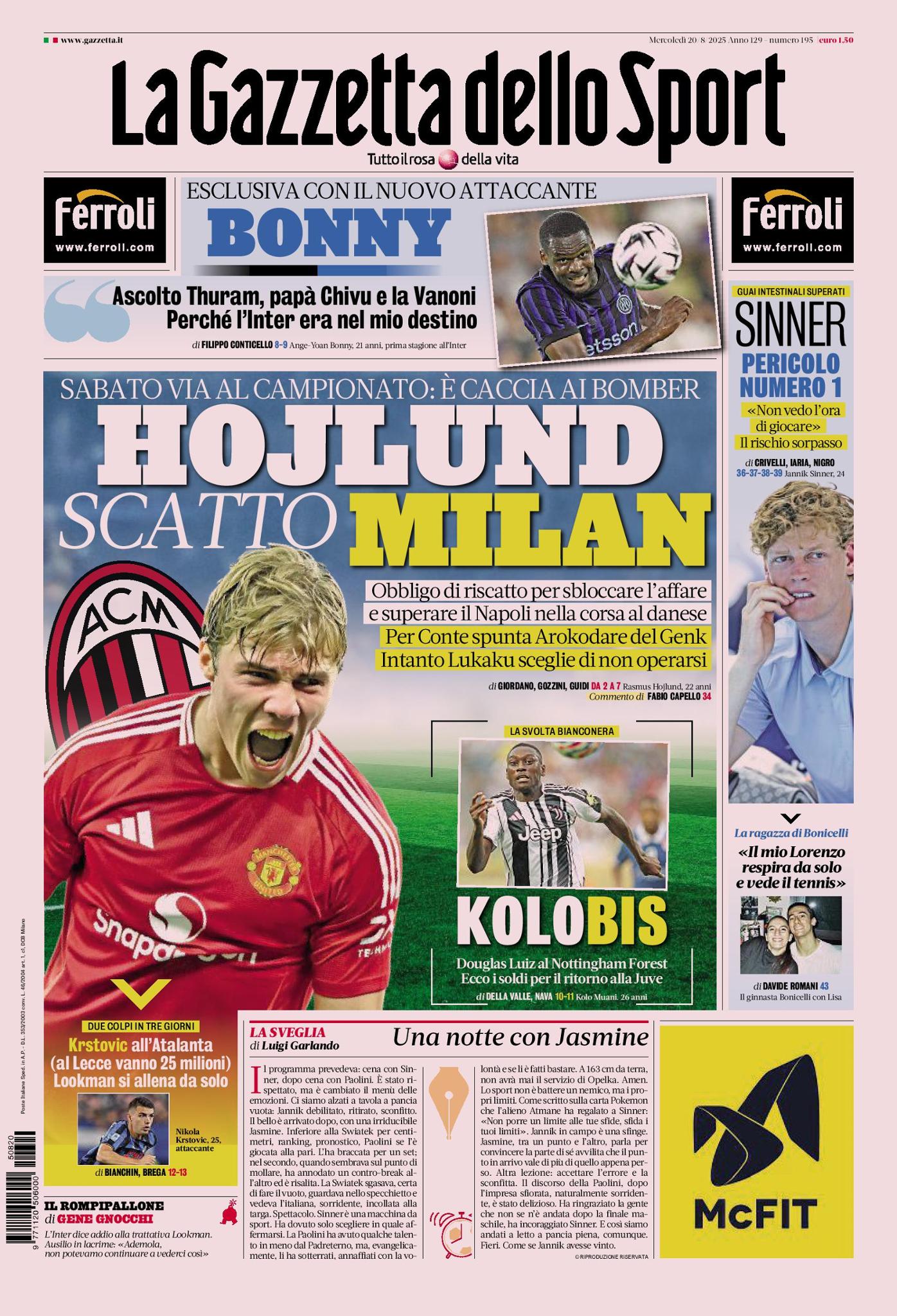 Per la squadra di Antonio Conte, al posto di Romelu Lukaku infortunato (il gigante belga ha deciso di non farsi operare), ora spunta la possibilità Tolu Arokodare del Genk. Bel colpo dell'Atalanta che, per 25 milioni di euro, rileva dal Lecce il centravanti montenegrino Nikola Krstović. Intanto, è tornato a Bergamo il nigeriano Ademola Lookman: si allenerà da solo fino ai primi di settembre.