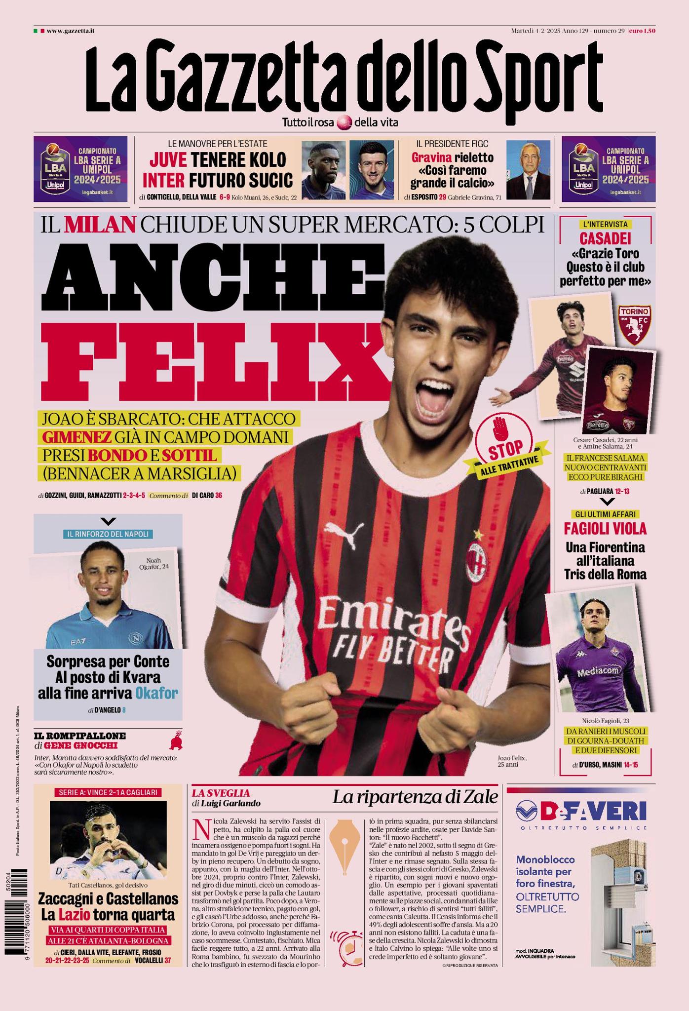 Proprio quest'ultimo rappresenta la sorpresa in casa della squadra di Antonio Conte. È lui, alla fine, dopo tanti nomi altisonanti trattati, il sostituto di Khvicha Kvaratskhelia. La Fiorentina piazza il colpo Nicolò Fagioli della Juventus, mentre la Roma acquista tre giocatori: Victor Nelsson (Galatasaray), Anass Salah-Eddine (Twente) e Lucas Gourna-Douath (RB Salisburgo). Per l'anno venturo, invece, la Juventus punterà a tenere Randal Kolo Muani e l'Inter a chiudere il colpo Petar Sučić.