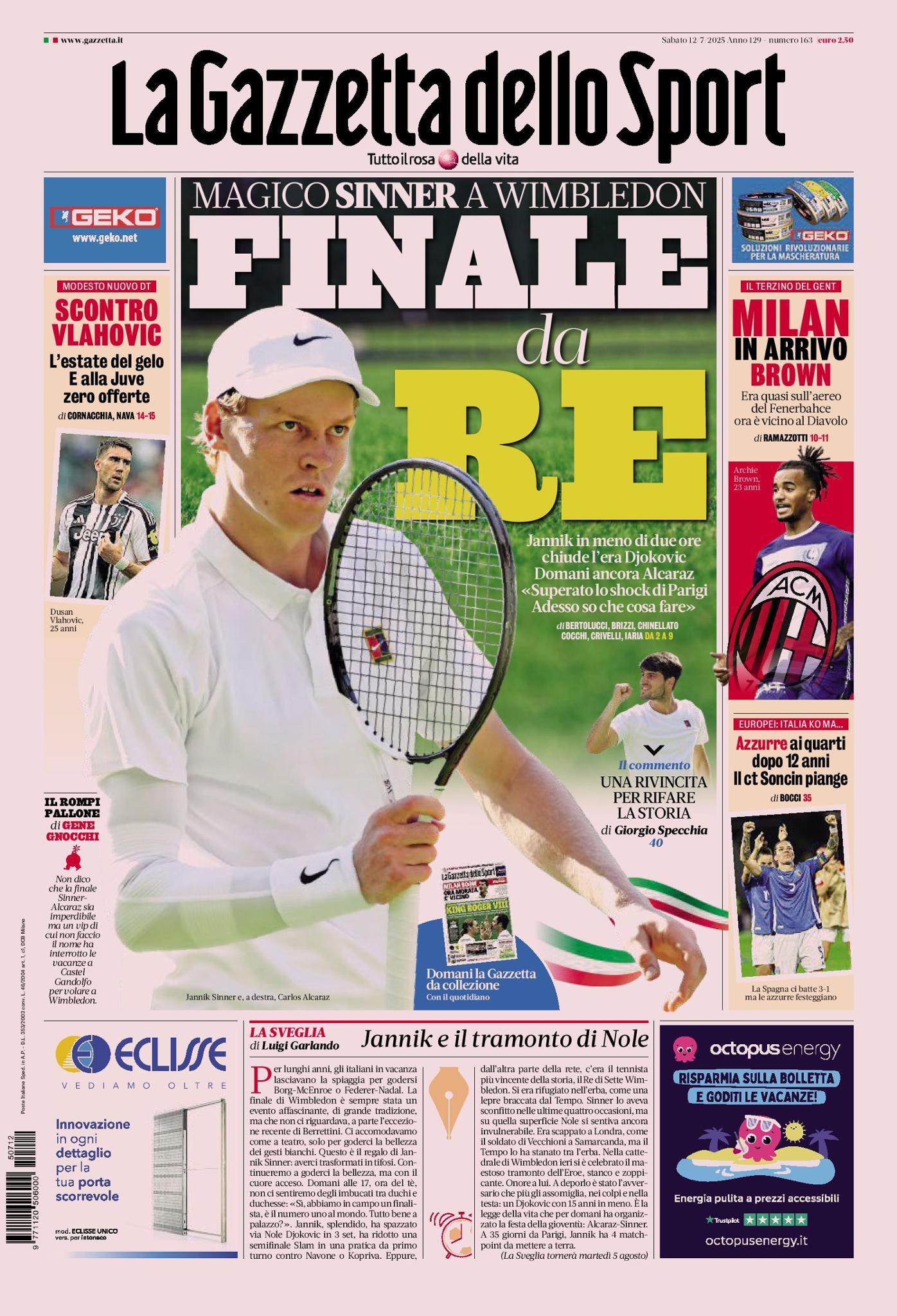 È l'estate del gelo, invece, tra la Juventus e Dušan Vlahović: scontro sulla risoluzione del contratto e sull'eventuale buonuscita. E al club bianconero non arrivano offerte per il centravanti serbo. Europei Femminili di calcio: l'Italia sconfitta, 1-3, dalla Spagna nell'ultimo impegno del Gruppo B, ma ugualmente qualificata ai quarti: affronterà la Norvegia.