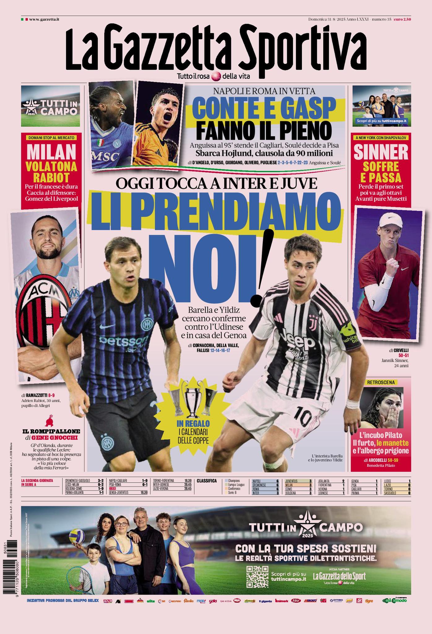 Spazio anche a Napoli e Roma, entrambe vittoriose e ora in vetta alla classifica. Decisivo il gol di Anguissa al 95’ contro il Cagliari per gli uomini di Conte, mentre la squadra di Gasperini ha superato il Pisa grazie a Soulé. Tra le notizie di mercato, evidenziata la clausola da 90 milioni per Rasmus Højlund.