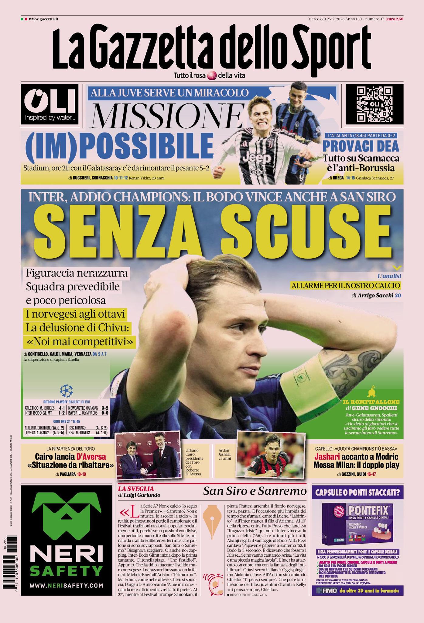 In alto, sotto la testata, si parla ancora di Champions, più precisamente di Juventus-Galatasaray e Atalanta-Borussia Dortmund, in campo alle ore 21:00. Entrambe le squadre italiane devono rimontare la sconfitta dell'andata: 2-5 per i bianconeri, 0-2 per gli orobici. Ci riusciranno?