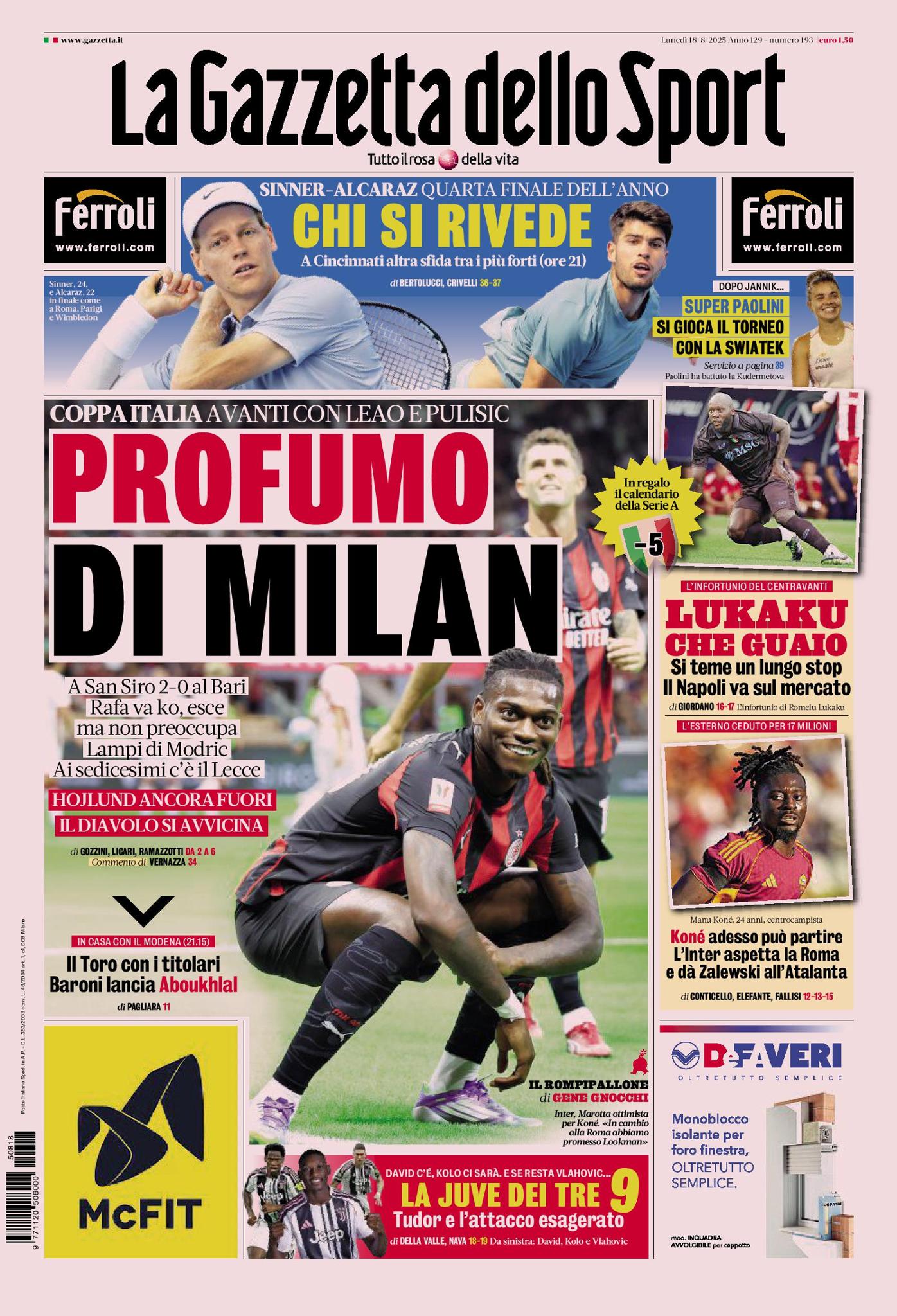 In casa Napoli, invece, si teme un lungo stop per Romelu Lukaku: azzurri pronti a tornare sul mercato per acquistare un altro centravanti. La Roma può vendere Manu Koné: l'Inter aspetta i giallorossi e, intanto, vede un ex romanista, Nicola Zalewski, a titolo definitivo all'Atalanta.