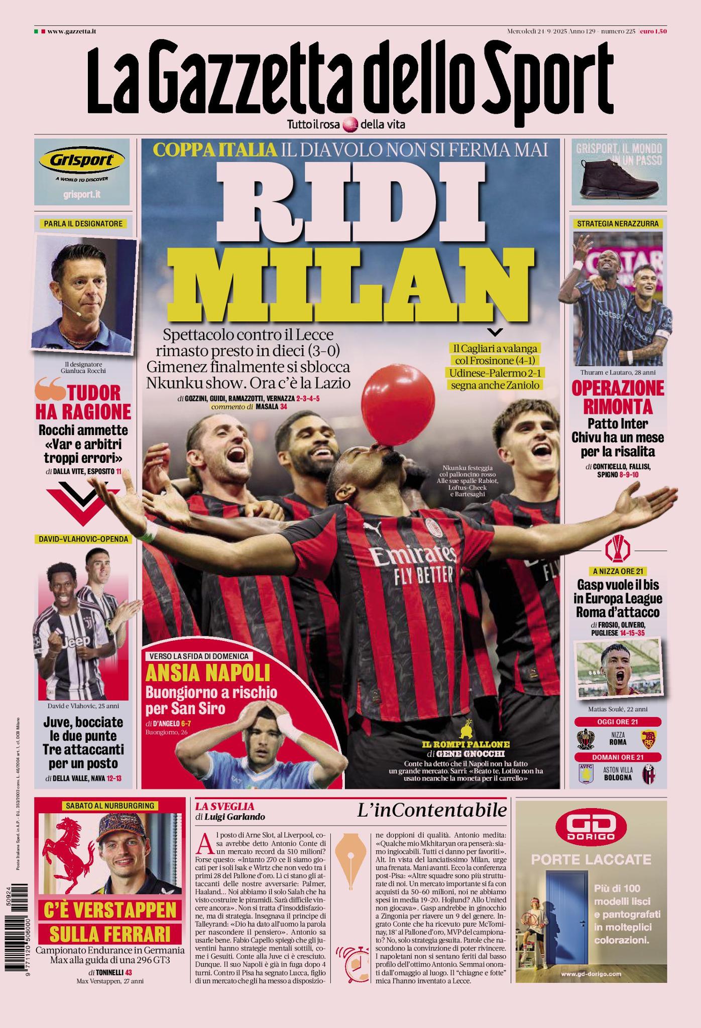 Il Napoli trema: Alessandro Buongiorno è a rischio per il big match di domenica sera in Serie A contro il Milan, mentre l'Inter di Cristian Chivu lancia l'operazione rimonta in classifica. Intanto stasera è già tempo di Europa League: alle ore 21:00, all'Allianz Riviera di Nizza, scenderà in campo la Roma di Gian Piero Gasperini contro i padroni di casa. Obiettivo, alzare il trofeo a fine stagione: Gasp ci è già riuscito con l'Atalanta.