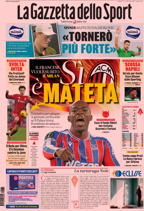 PIANETAMILAN news milan rassegna stampa Prima pagina Gazzetta dello Sport: “Si è Mateta. Il francese vuole subito il Milan”