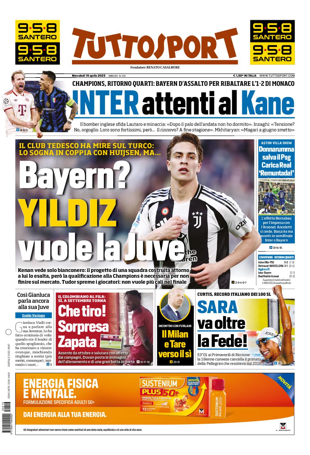 In alto, sotto la testata, la presentazione di Inter-Bayern Monaco, ritorno dei quarti di finale della Champions League 2024-2025 in programma stasera, alle ore 21:00, a 'San Siro'. Nerazzurri avanti, 2-1, nel punteggio dopo i 90' dell'andata all'Allianz Arena in Germania ma occhio a Harry Kane e compagni sulla strada per le semifinali.