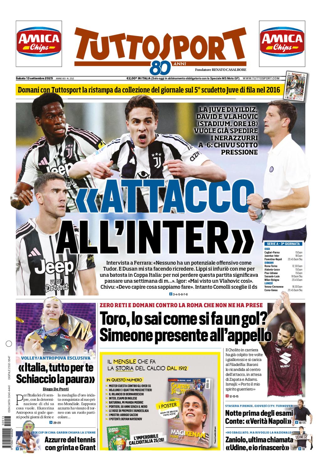 Domani, invece, alle ore 12:30, si disputerà Roma-Torino allo stadio 'Olimpico': i granata di Marco Baroni, che in 180' di campionato non hanno ancora trovato la via del gol, schiereranno il 'Cholito' Giovanni Simeone in attacco. Ma occhio alla difesa della Roma di Gian Piero Gasperini: nelle prime due giornate i giallorossi non hanno subito gol.