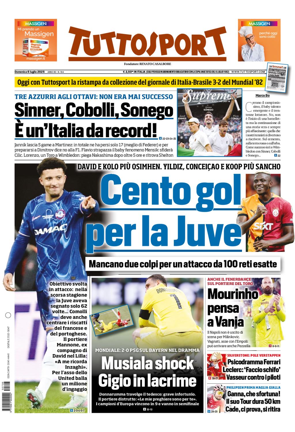 Il Fenerbahçe di José Mourinho piomba su Vanja Milinković-Savić, portiere del Torino per cui il Napoli non è ancora uscito di scena. I granata, intanto, potrebbero portarsi a casa dall'Empoli, dopo Faustino Anjorin e Ardian Ismajli, anche Giuseppe Pezzella. Durante PSG-Bayern, quarti di finale del Mondiale per Club negli U.S.A., caviglia rotta per Jamal Musiala dopo l'uscita di Gianluigi Donnarumma.