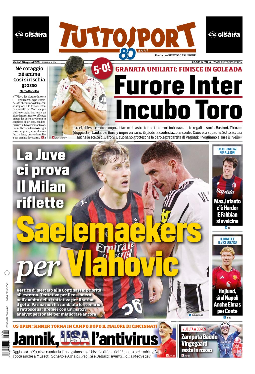 Operazioni in dirittura d'arrivo con Manchester United e RB Lipsia. Chiosa con il Torino di Marco Baroni che, ieri sera, a 'San Siro', ha esordito nel campionato di Serie A 2025-2026 incassando una sonora sconfitta, 0-5, contro la scatenata Inter di Cristian Chivu. Granata umiliati, sono tutti sotto accusa.