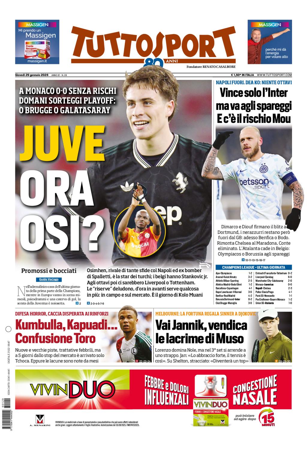 Chiosa con il mercato del Torino: a cinque giorni dalla conclusione della sessione invernale, è arrivato il solo Tchoca dal Corinthians. Eppure, ha commentato il quotidiano, le lacune della squadra granata sono note da mesi. Saranno giorni di trattative febbrili per arrivare agli obiettivi prefissati, soprattutto in difesa. Due tra questi, Marash Kumbulla e Steve Kapuadi.