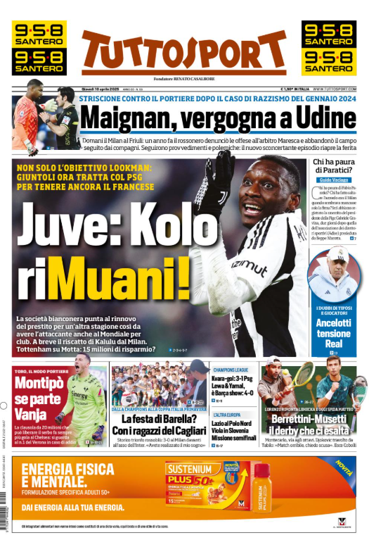 Questa è la prima pagina di 'Tuttosport', in edicola oggi, giovedì 10 aprile 2025. Diamo un’occhiata alle principali novità sul mondo dello sport e in particolare del calcio, cercando di evidenziare le notizie sul Milan.