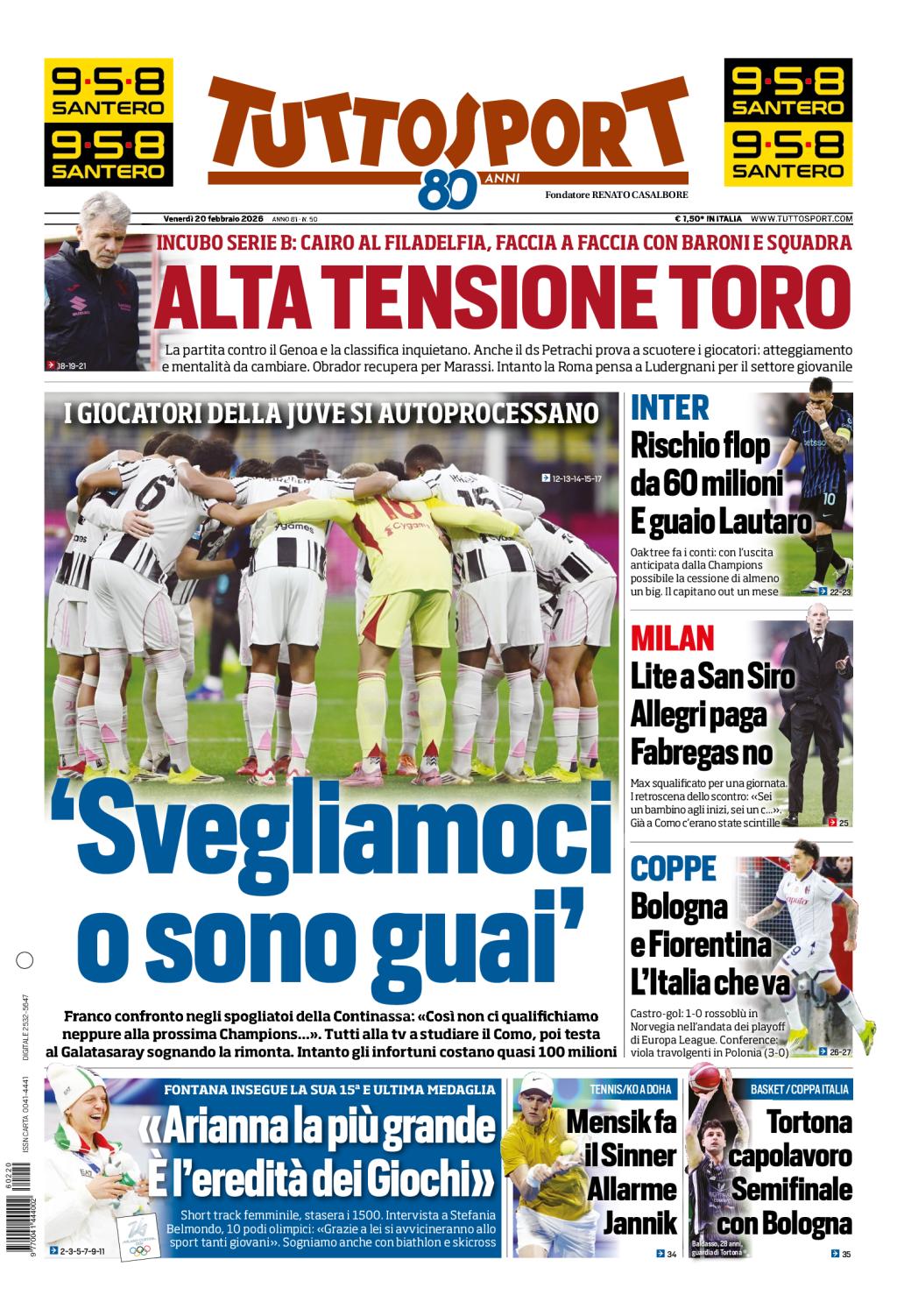 Guai in casa Inter: in caso di eliminazione contro il Bodø/Glimt ai playoff di Champions, i nerazzurri rischiano un deficit economico di 60 milioni di euro. In più, si è aggiunto l'infortunio muscolare per il capitano e bomber Lautaro Martínez. Irritazione al Milan per quanto successo, invece, nel finale del recupero di campionato contro il Como.