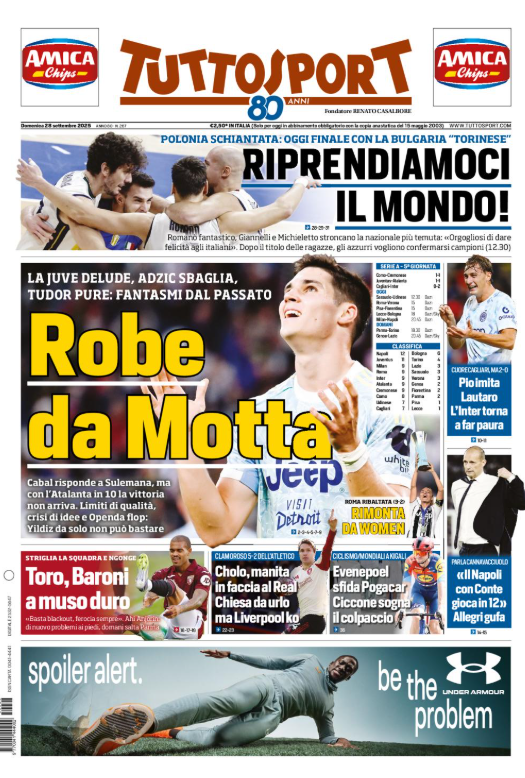 Questa è la prima pagina del 'Tuttosport', in edicola oggi, domenica 28 settembre 2025. Diamo un’occhiata alle principali novità sul mondo dello sport e in particolare del calcio, cercando di evidenziare le notizie sul Milan.