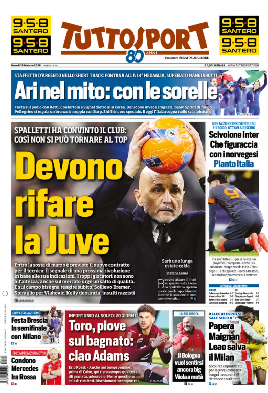 Questa è la prima pagina del 'Tuttosport', in edicola oggi, giovedì 19 febbraio 2026. Diamo un’occhiata alle principali novità sul mondo dello sport e in particolare del calcio, cercando di evidenziare le notizie sul Milan.