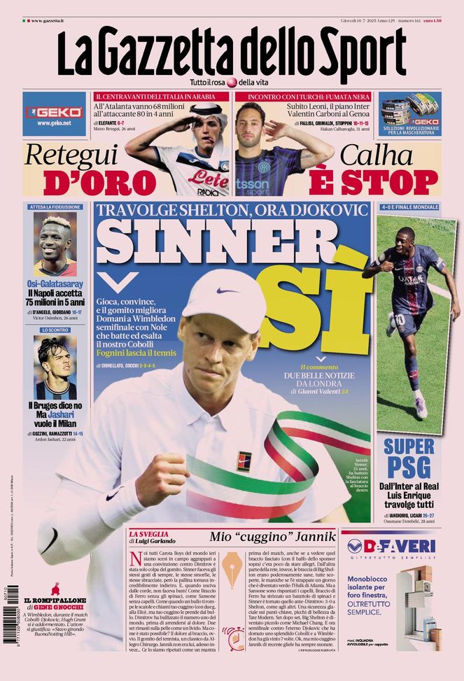 La Gazzetta dello Sport, la prima pagina di oggi, giovedì 10 luglio 2025