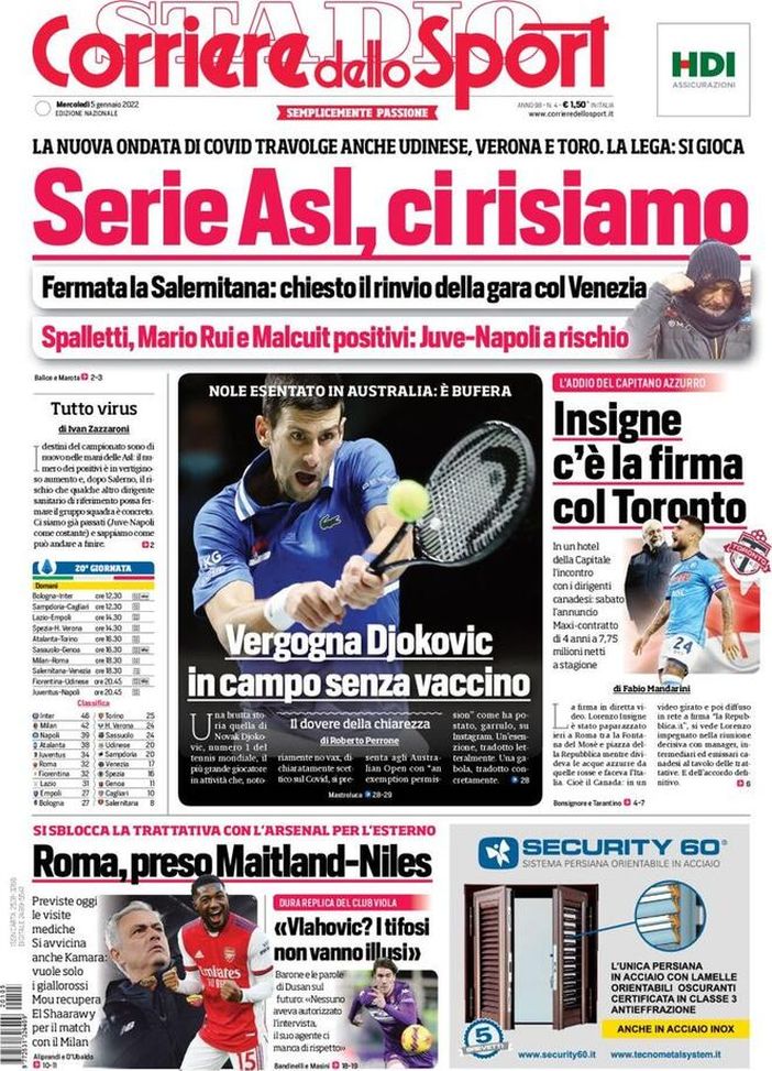 Il Corriere dello Sport, la prima pagina di oggi, mercoledì 5 gennaio 2022