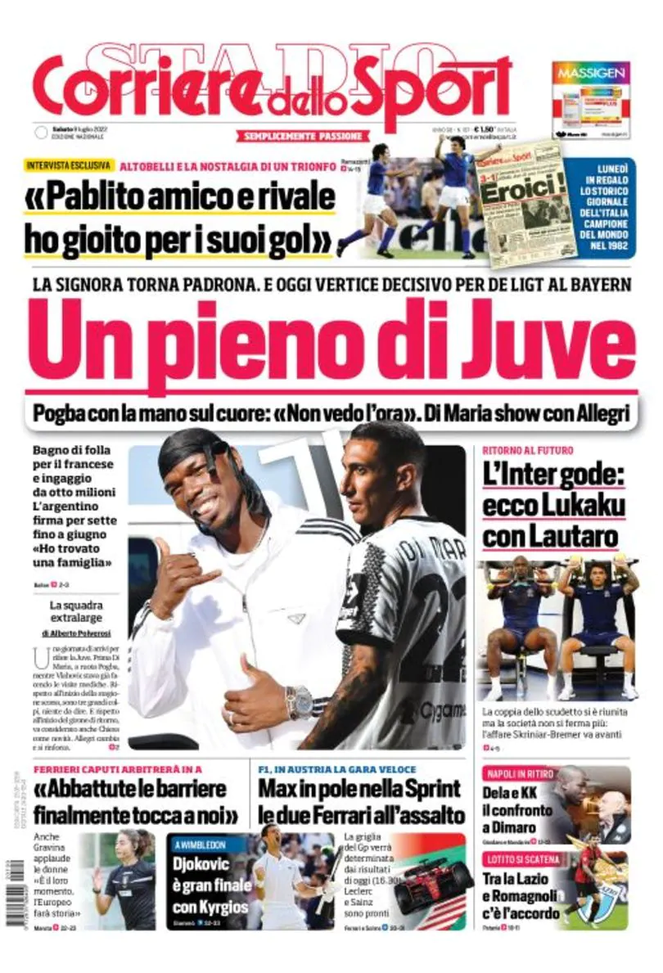 La prima pagina del 'Corriere dello Sport', in edicola oggi, 08-07-2022