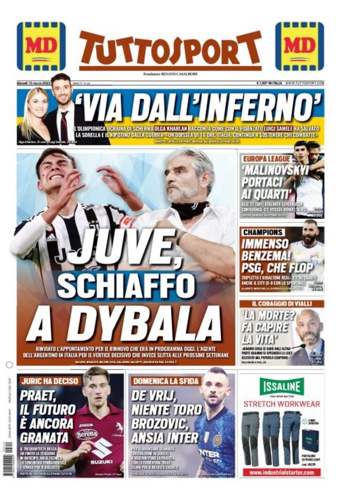 Tuttosport, la prima pagina di oggi, giovedì 10 marzo 2022