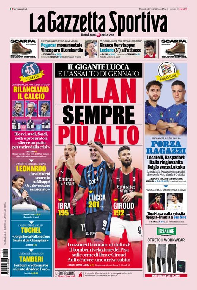 La Gazzetta dello Sport, la prima pagina di oggi, domenica 10 ottobre 2021
