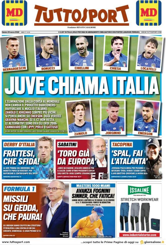 Tuttosport, la prima pagina di oggi, sabato 26 marzo 2022