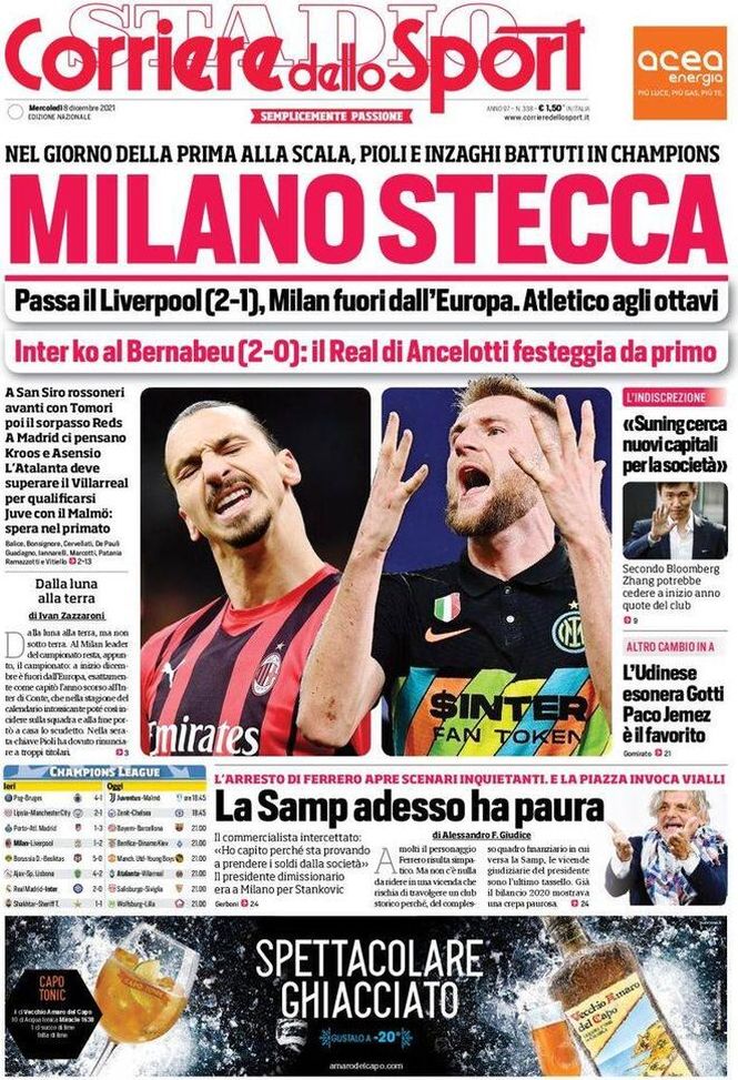 Il Corriere dello Sport, la prima pagina di oggi, mercoledì 8 dicembre 2021