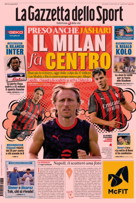 Quotidiani sportivi, le prime pagine: Milan, Jashari e la rivoluzione in mediana