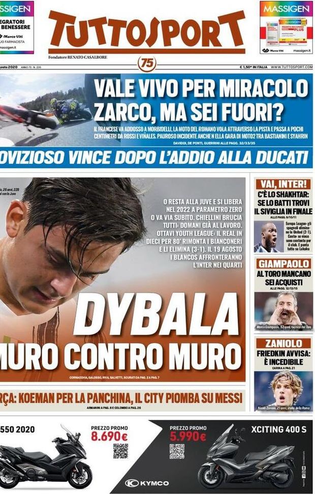 TUTTOSPORT – La prima pagina di oggi, 17 agosto 2020