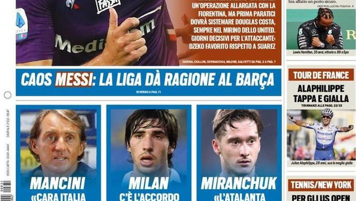 TUTTOSPORT – La prima pagina di oggi, 31 agosto 2020
