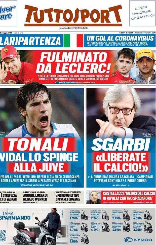 TUTTOSPORT – La prima pagina di oggi, 13 maggio 2020