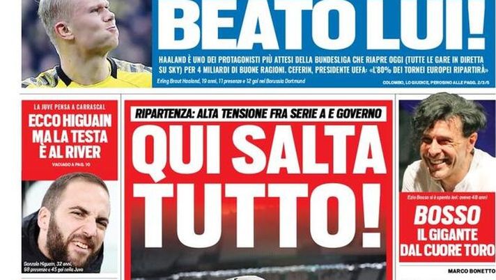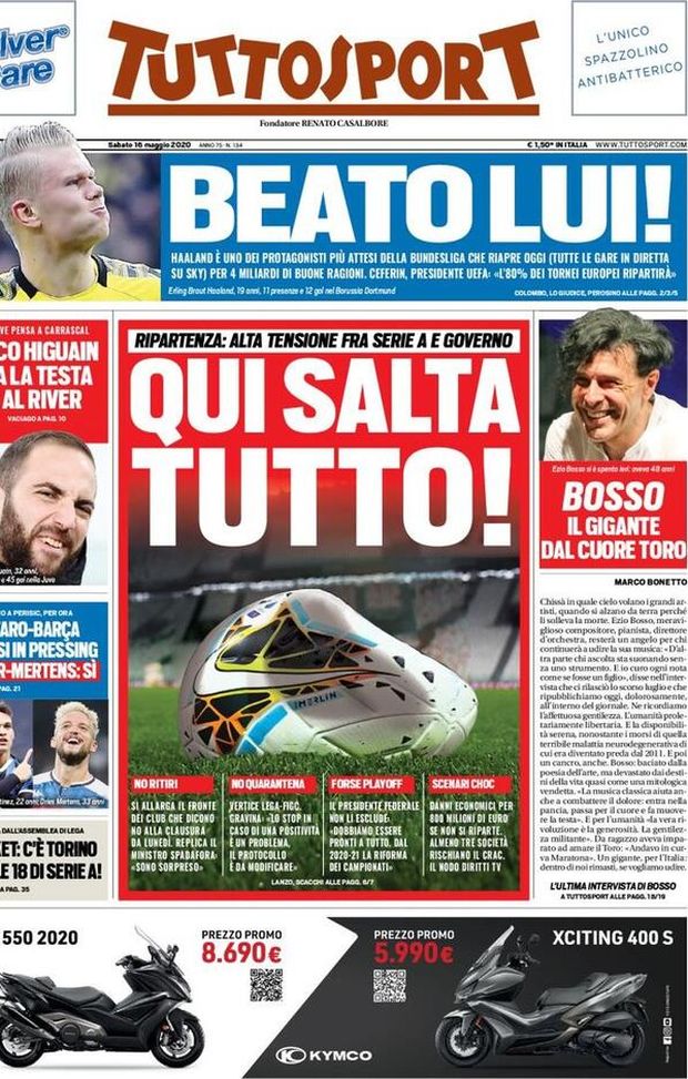 TUTTOSPORT – La prima pagina di oggi, 16 maggio 2020