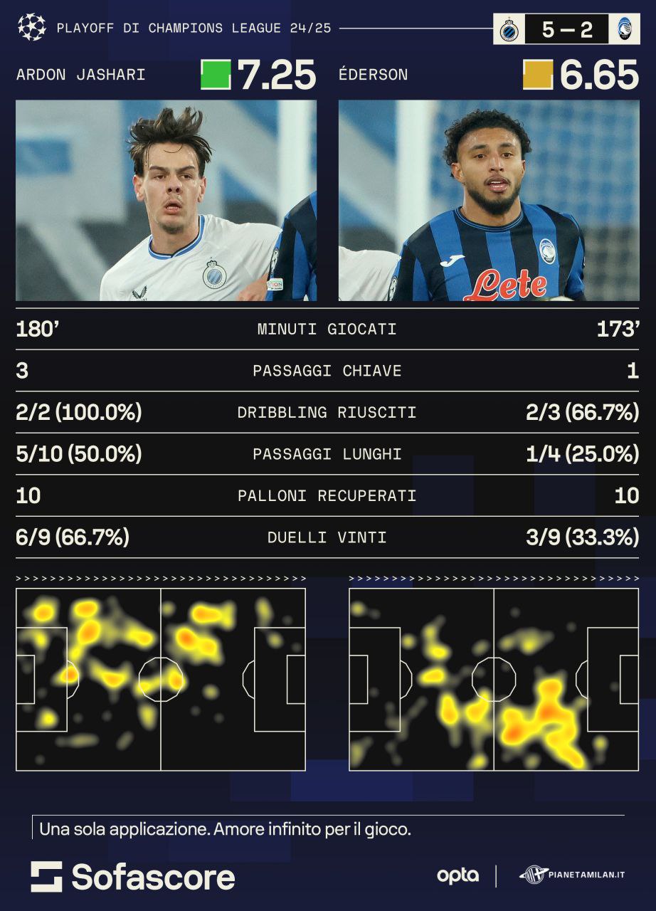 Il Bruges riuscì ad eliminare un'Atalanta nettamente favorita in quella doppia sfida e grande merito va anche alle due prove di Jashari contro il centrocampo della Dea. Non era uno scontro facile per lo svizzero, visto che Ederson è tutt'ora considerato come uno dei centrocampisti più forti della Serie A. Certo, due partite non fanno una prova determinante, sicuramente, ma dimostrano chiaramente come Jashari sia in grado di duellare senza problemi con un centrocampista del calibro di Ederson, che ha qualità che difficilmente si trovano in Serie A. Sarà il campo a parlare, visto che Jashari dovrà comunque adattarsi a un calcio diverso, ma la prova in Champions League contro l'Atalanta è un chiaro segnale positivo.
