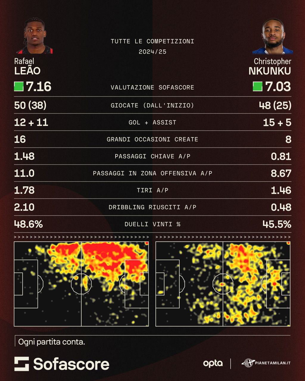 Da qui nascono i dubbi, come potrebbero giocare insieme? Leao e Nkunku sembrano due giocatori che 'pestano' posizioni molto simili in campo, ma se Allegri dovesse continuare con il 3-5-2, potrebbero coesistere in avanti con un attacco molto particolare, magari senza punta di boa. Nkunku potrebbe restare più al centro con Leao che si potrebbe allargare sulla sua amata fascia. Con un possibile attacco a tre, Nkunku potrebbe giocare come falso nueve, come esterno destro e anche dietro la punta. Starà ad Allegri trovare al chiave giusta.