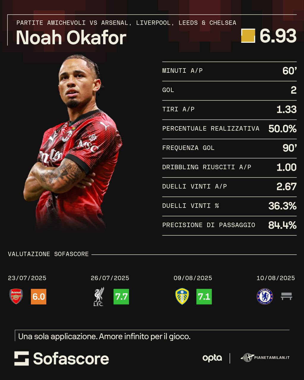 Le amichevoli estive parlano chiarissimo: Noah Okafor, che ha sfruttato anche la mancanza di punte in rosa, è stato tra i più positivi tra i rossoneri, specialmente contro il Liverpool, ma anche contro le altre squadre. Lo svizzero è stato prestato al Napoli la scorsa stagione non lasciando il segno, ma potrebbe tornare ad essere molto utile, un po' nello stesso ruolo visto al suo primo anno in rossonero: un giocatore che possa decidere le partite dalla panchina. Con i moduli di Allegri potrebbe giocare sia da esterno sinistro, sia come prima punta, sia come seconda punta, forse il ruolo dove potrebbe fare meglio. Vedremo quale sarà il suo ruolo, sempre se non ci saranno chiamate importanti dal mercato.