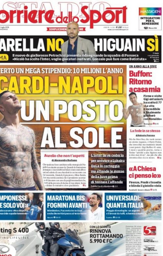 Milan sui media, le prime pagine dei giornali di oggi (05/07/2019)