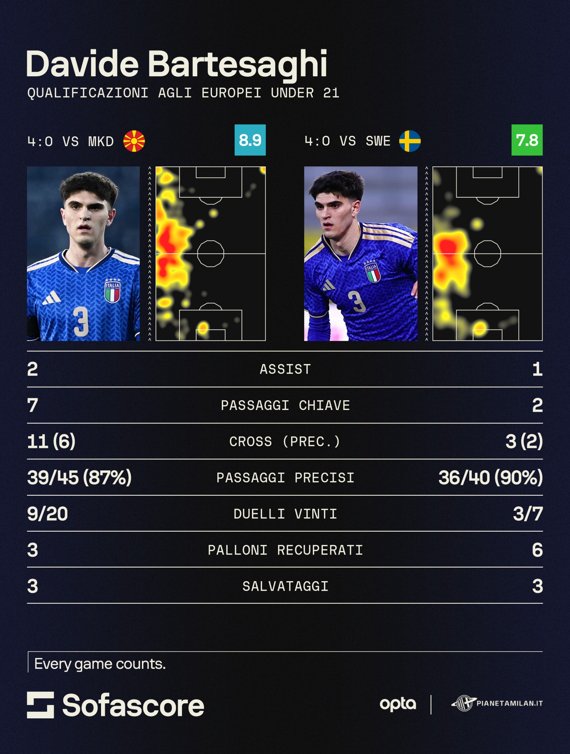 —Bartesaghi ormai non è più una sorpresa per il Milan: da inizio stagione si è preso la fascia sinistra dei rossoneri diventando il titolare del presente e del futuro del club. Un giocatore che ha dimostrato di avere le caratteristiche giuste per il Diavolo. Ma la prospettiva si sposta verso l'Italia 'maggiore': Dimarco probabilmente resta il titolare, ma va considerata anche l'età visto che si parla di un classe 1997. Stesso discorso per Spinazzola che ha quattro anni in più di Dimarco. Bartesaghi è un classe 2005 e può solo migliorare da qui ai prossimi anni. L'Under 21 gli sta stretta è palese: peccato non averlo visto già contro Bosnia e Irlanda del Nord, ma ora non ci sono più scuse. Serve convocarlo il prima possibile. Lui con Palestra dall'altra parte sono il futuro della Nazionale e non ci sono discussioni a riguardo.