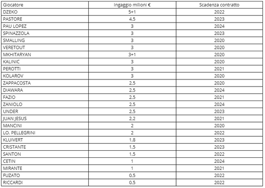 Qualora si seguisse l'esempio del club bianconero, ovvero con un taglio stipendi del 30% (nello specifico i mesi di marzo, aprile, maggio e giugno), la Roma andrebbe a risparmiare circa 30 milioni di euro netti (circa 60 milioni lordi). A questi va aggiunto lo stipendio di 2,5 milioni di euro netti che percepisce Paulo Fonseca. Un risparmio estremamente importante, che permetterebbe al club giallorosso, di ridurre le perdite legate ai mancati introiti dello stadio, sponsor vari ed eventuali diritti tv.