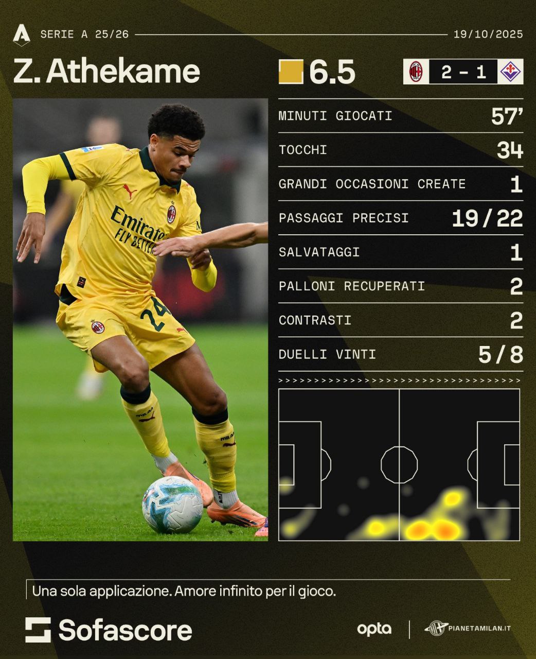 Certo, in attacco può contare su tanta corsa, ma non è assolutamente a livello di maturità di Saelemaekers. La gara è cambiata quando Allegri lo ha tolto dal campo per inserire Gimenez, ma non è colpa di Athekame, semmai merito del belga che a destra fa la differenza. Lo svizzero è giovanissimo (classe 2004) e ha tutto lo spazio per crescere ancora in questa stagione, specialmente sotto le ali di Allegri. Per ora, nei pochi sprazzi visti, si è potuto vedere un terzino volenteroso e su cui il Milan, almeno per ora in casi di emergenza, può contare.