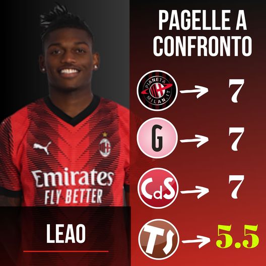 La pagella di Rafael Leao dopo Borussia Dortmund-Milan ha francamente dell'incredibile. Secondo quasi tutti risulta il migliore in campo, al pari di Tomori, tanto da ricevere spesso la palma di MVP della partita; per Tuttosport invece la prestazione dell'attaccante portoghese vale appena un 5.5. Questa la motivazione: "Quando parte, si sa, fa male ed è difficile da fermare; le migliori occasioni rossonere nascono dalle sue invenzioni. Peccato però che per lunghi tratti della partita si assenti". Il 'caso Leao' è emblematico di quanto le pagelle siano giudizi puramente soggettivi e quindi opinabili. E voi cosa ne pensate? Ditecelo sui social e nei commenti!