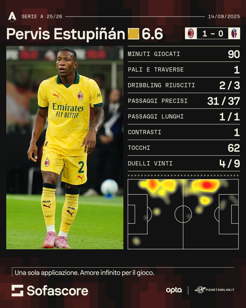 Andiamo a vedere i numeri del terzino grazie alle statistiche di 'SofaScore' e 'Opta' per PianetaMilan.