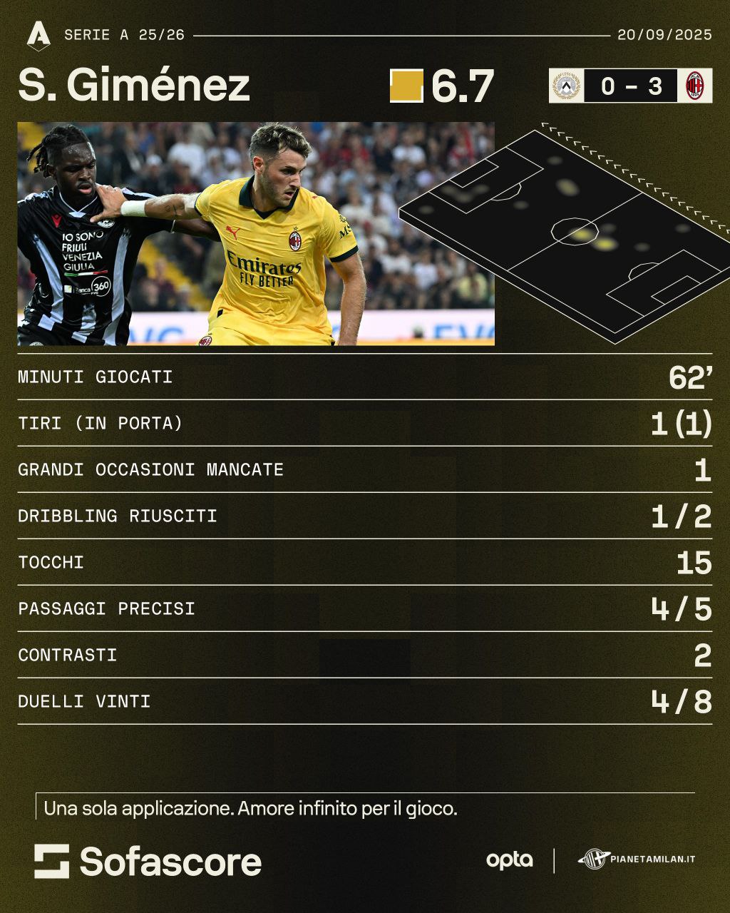 Gimenez non ha ancora trovato il gol in questo inizio di stagione e i numeri contro l'Udinese non sono positivi: fa impressione il solo tiro tentati e i pochissimi palloni toccati, ma ci sono anche dei lati positivi. E' vero, l'errore davanti al portiere è grave e non è il primo dopo le difficoltà contro il Bologna. In quella occasione, però, Gimenez si è mosso da attaccante vero attaccando lo spazio e ricevendo bene l'assist di Estupinan. E' questo che fa ben sperare: Santiago resta sempre al centro della partita e si muove sempre bene. Si ma allora cosa serve per sbloccarsi?