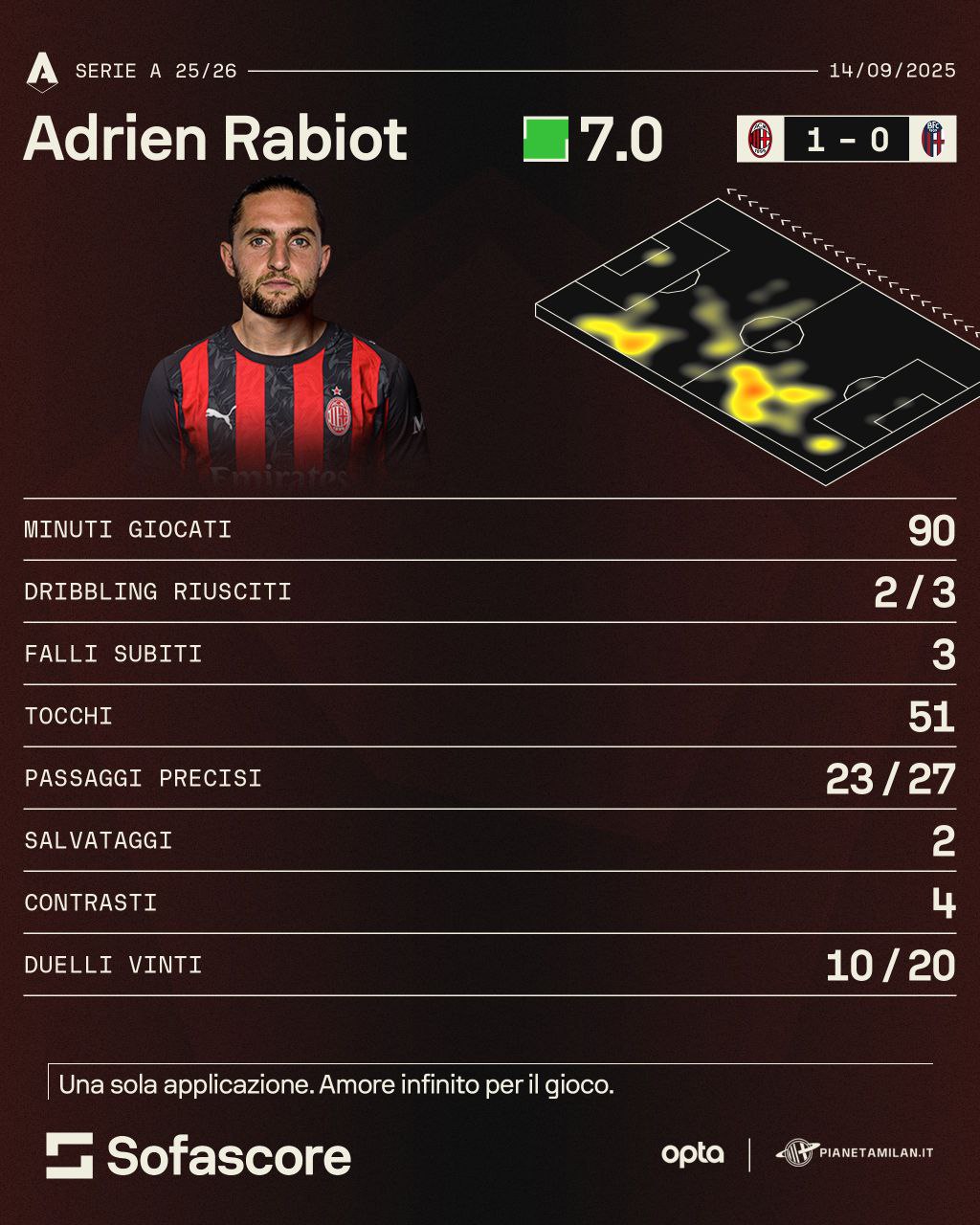 Al debutto subito in campo con pochi allenamenti a Milanello sulle gambe: Rabiot è sembrato un giocatore del Milan da anni. Zero problemi ad ambientarsi nel centrocampo rossonero e nelle dinamiche di Massimiliano Allegri (che lui conosce fin troppo bene). Qualche spunto in avanti, con una azione spettacolare palla al piede e qualche inserimento. L'impatto del francese, però, è stato molto più evidente in fase difensiva, almeno al momento.