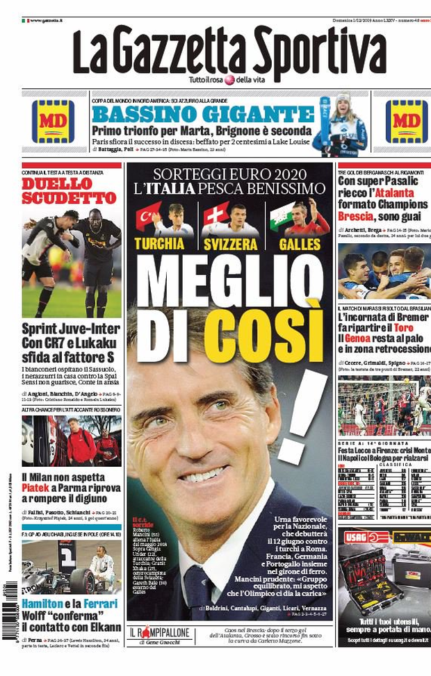 Milan sui media, le prime pagine dei giornali di oggi (01/12/2019)