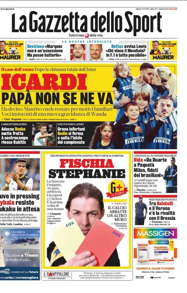 Milan sui media, le prime pagine dei giornali di oggi (03/08/2019)