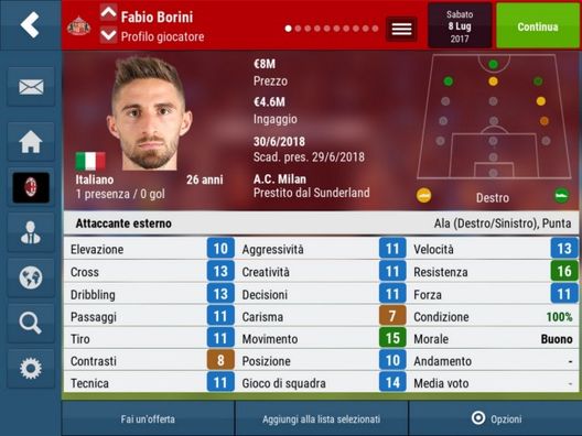 Sono ben 3 i giocatori in prestito al Milan che vengono inizialmente assegnati da FM2018. Si tratta di Franck Kessié dall'Atalanta, di Nikola Kalinić dalla Fiorentina e di Fabio Borini dal Sunderland: fedelmente riprodotta, quindi, la situazione reale del club rossonero, che, la scorsa estate, ha prelevato i suddetti atleti con questa formula. La brutta notizia? Su nessuno di loro è stata inserita alcuna clausola per il diritto e/o per l'obbligo di riscatto: quindi, qualora si voglia puntare su questi giocatori anche per il futuro, bisognerà tenere conto dell'investimento per i loro cartellini a campionato in corso. Sono, infine, 11 i calciatori che, inizialmente, figurano come di proprietà del Milan ma in prestito ad altri club: Carlos Bacca (Villarreal, con clausola di acquisto a 15,5 milioni di euro); Gianluca Lapadula (Genoa, con clausola di acquisto a 11); M'Baye Niang (Torino); Andrea Bertolacci (Genoa); José Sosa (Trabzonspor, con clausola di acquisto a 3,4); Alessandro Plizzari (Ternana); Gian Filippo Felicioli (Hellas Verona, con clausola di acquisto a 3); Stefan Simič (Crotone); Gianmarco Zigoni (Venezia); Andrej Modić (Rende); Antonio Fabozzi (Cremonese).