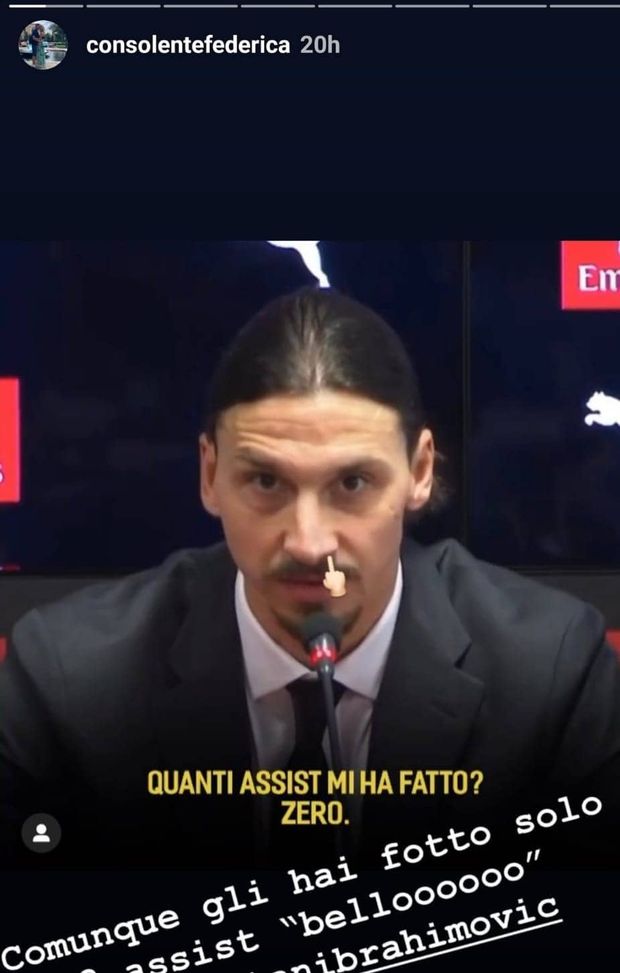 ULTIME NEWS MILAN - Oltre che per i tantissimi gol segnati in carriera, Zlatan Ibrahimovic è diventato famoso al mondo anche per i suoi innumerevoli assist ai compagni. Lo svedese sa far rendere al meglio anche chi lo circonda, per conferma chiedere ad Antonio Nocerino. Nella stagione 2011/2012, l'ex rossonero ha segnato ben 10 gol in campionato, alcuni dei quali arrivati grazie ai suggerimenti di Ibrahimovic. "Ti sei trovato molto bene con Nocerino" gli è stato chiesto in conferenza stampa; ecco la risposta alla Zlatan: "Veramente è lui che si è trovato bene con me, lui non mi ha fatto nemmeno un assist". Da qui la risata generale per una battuta delle sue. Non tutti però hanno apprezzato tale uscita. Federica Consolente, moglie di Antonio Nocerino, ha infatti postato su Instagram una story in cui attacca Ibrahimovic senza mezzi termini, mostrando anche il dito medio e rispondendo stizzita. Non tutti, a quanto pare, dimostrano uno spiccato senso dell'umorismo...