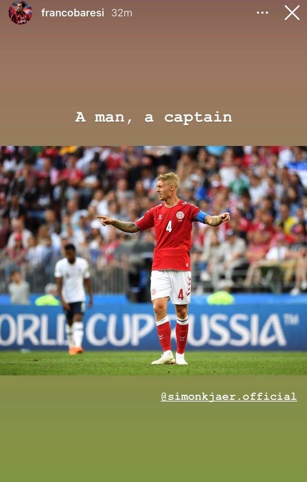 Il comportamento di Simon Kjaer dopo il malore di Christian Eriksen non è passato sicuramente inosservato. Tutto il mondo del calcio e non solo sta celebrando il danese non solo come capitano ideale, ma come uomo con la U maiuscola. A proposito di gradi da capitano, in casa Milan permangono i dubbi su chi consegnare la fascia in vista della prossima stagione. L'addio di Gianluigi Donnarumma e la posizione in bilico di Alessio Romagnoli potrebbero rimescolare le carte in tavola. Ed ecco che i tifosi rossoneri, a gran voce, hanno approfittato di tale evento per spingere Kjaer a tale promozione. Non solo i tifosi, ma anche uno dei grandi capitani del Milan Franco Baresi. L'immortale numero 6, attraverso una story Instagram, sembra aver espresso la sua preferenza in maniera chiara. Una sorta di ufficialità? Ecco la foto. Ecco le top news di oggi sul calciomercato del Milan: le ultime su Giroud, Dzeko, De Paul e non solo